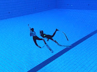 水中に落ちたフリスビーを拾いに潜って、浮上して投げて…